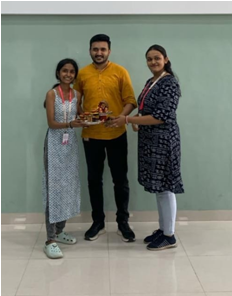 Secured 1st position in Arti Thali competition organized by the Literary and Theater Club during the Navli Navratri 2023 celebrations of UTU, Oct 2023